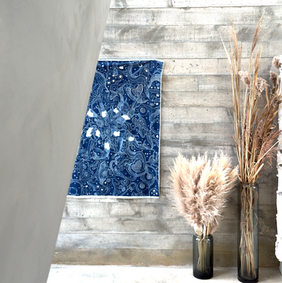 Hand-drawn wax resist batik on cotton.