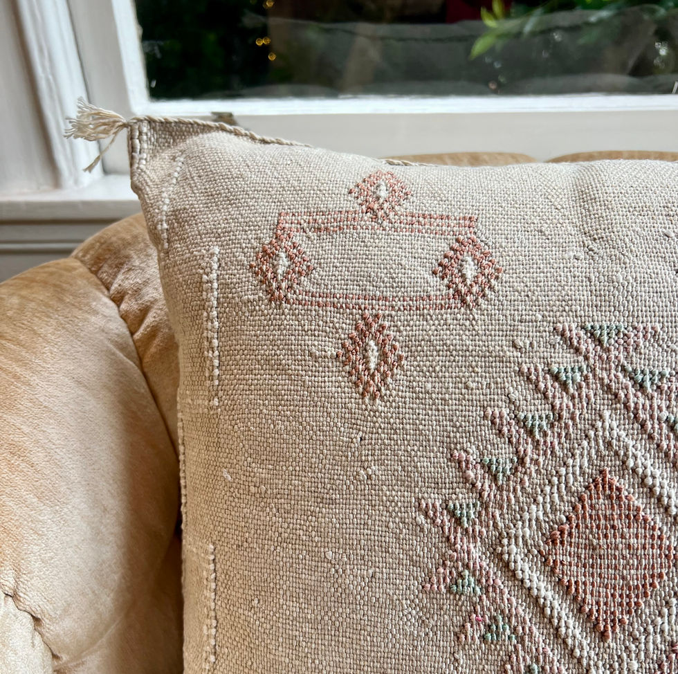 Minimalist and timeless, the Nour pillow offers a pale ivory canvas adorned with terracotta geometric embroidery. Its airy palette reflects desert light, while the intricate Berber symbols whisper stories of heritage and tradition. Perfect for layering with both neutral and vibrant textiles.
